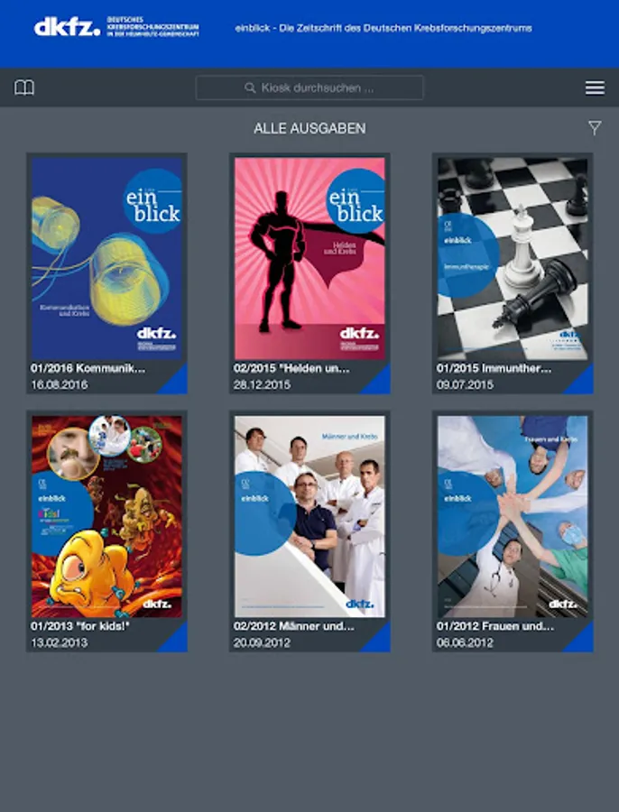 Research for a life without cancer: Read the "insight" for free on your tablet. The Science Magazine of the German Cancer Research Center (DKFZ) reports on current projects in cancer research and new approaches for successful treatment.