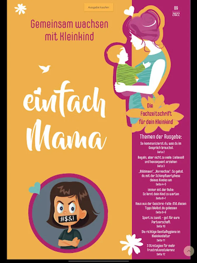 That's exactly why we developed the new trade journal "Simply Mom – Growing Together with a Toddler". We want to support you in gaining more security in all questions of upbringing and development. With practical tips and methods, we help you to make your family life less stressful and more harmonious. Our organization professionals will tell you their best tricks, how you, as a mum, can create small islands of peace to regain your strength.