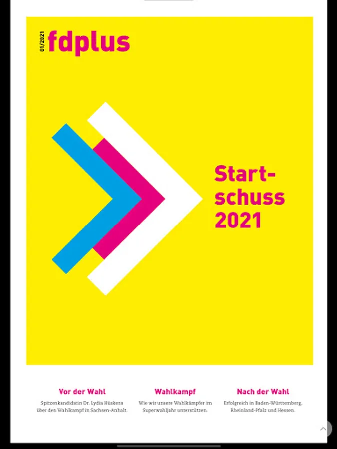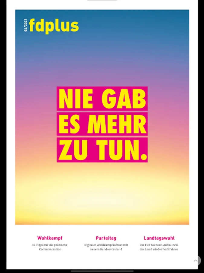 FDPlus is the membership magazine of the Free Democrats. An extra dose of FDP were, to the fresh look. The magazine is published four times a year.