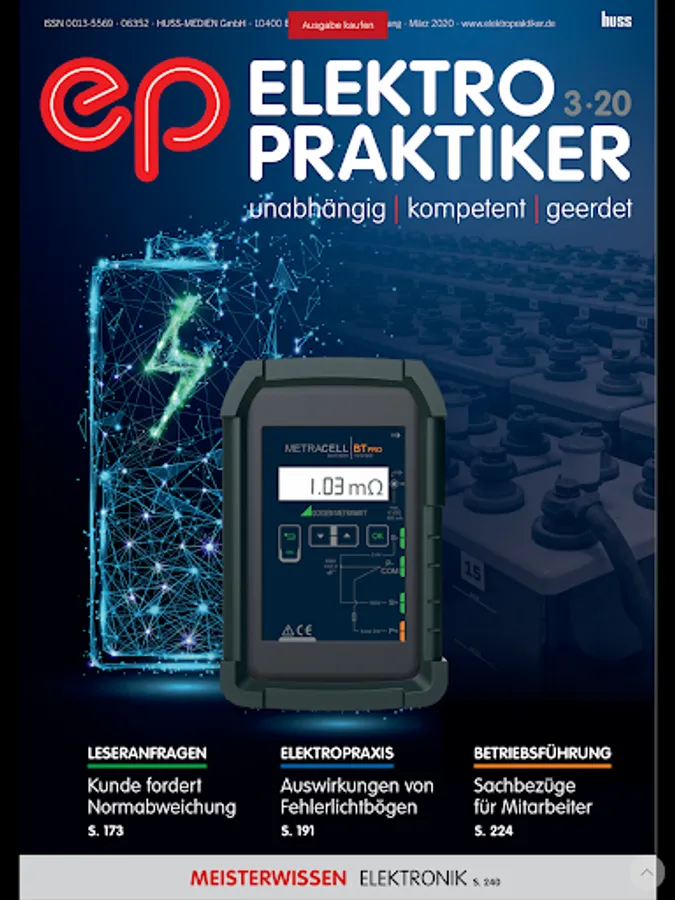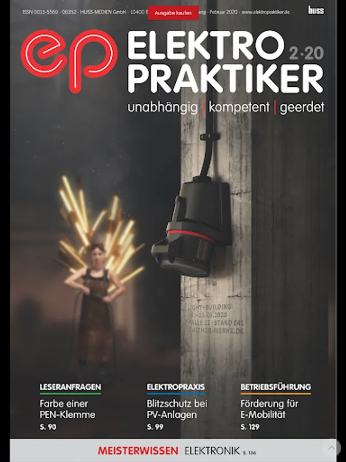 The national trade magazine ep ELEKTRO PRAKTIKER once a month provides the necessary expertise for qualified electricians in trade, planning and industry. The main focus technical and business information, practical explanations for European Standards and the requirements of work safety. The additional package provides epPLUS under www.elektropraktiker.de all digital journal article in the online archive and standard information service incl. Updating message.
