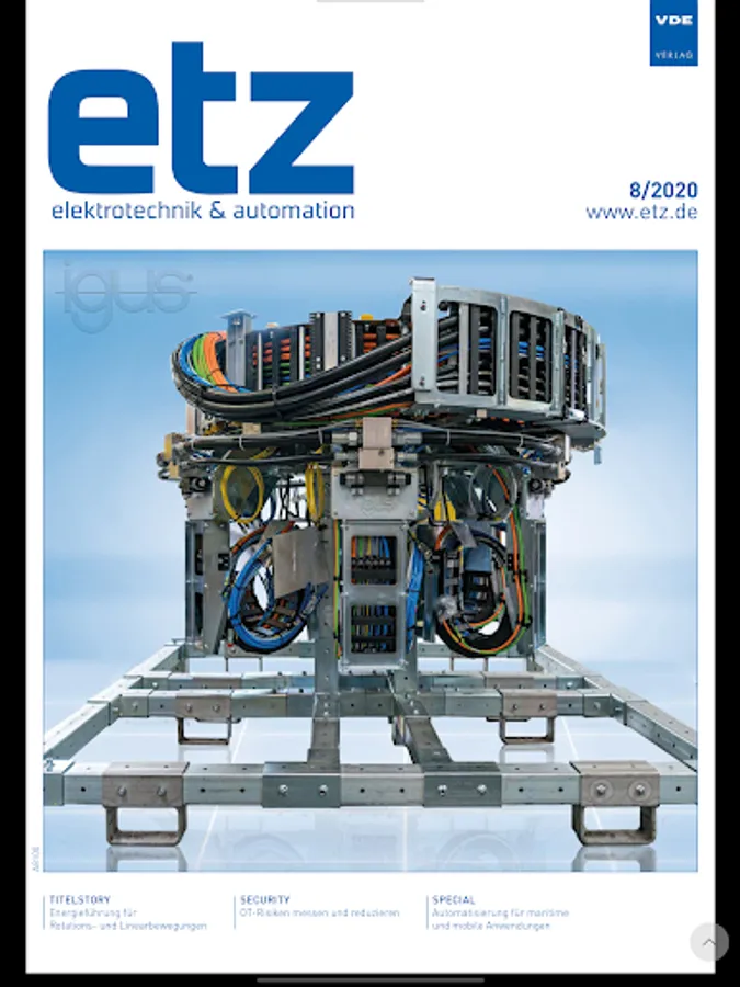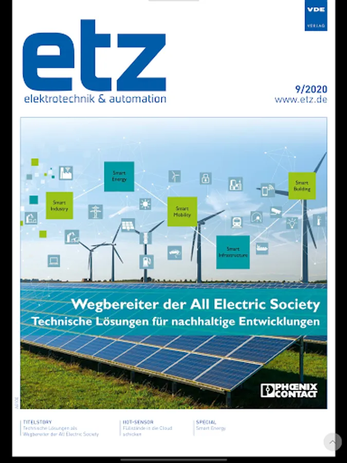 The etz reports monthly and with special editions in a technology and practice-oriented manner on the areas of industrial electrical engineering, automation and drive technology, energy and process automation, measurement and testing technology as well as renewable energies and energy efficiency. In addition to technical articles, application reports and product presentations, the trade journal regularly provides information on all valid drafts and final versions of electrical engineering standards.