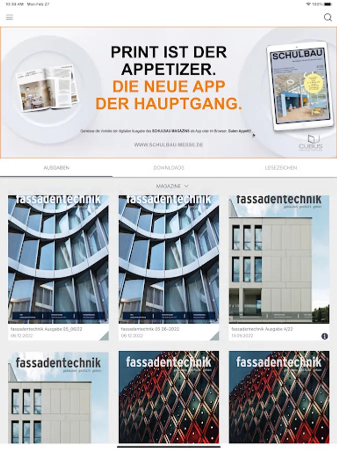 The trade journal Fassadentechnik offers information on building shells to be planned by engineers with a special focus on post and beam constructions and element facades, rear-ventilated curtain facades and lightweight metal construction. With our facade technology app, you can access our digital version of the trade journal as a subscriber. You can also read our special editions. Use our digital extras on all end devices, e.g. B. Image galleries, videos, individually adaptable reading mode, full-text searches and much more.