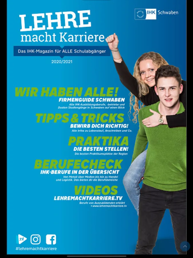 Teaching makes a career is the IHK magazine for ALL school leavers. Here you will find all the information about training and exams, application tips and many training positions in your region.