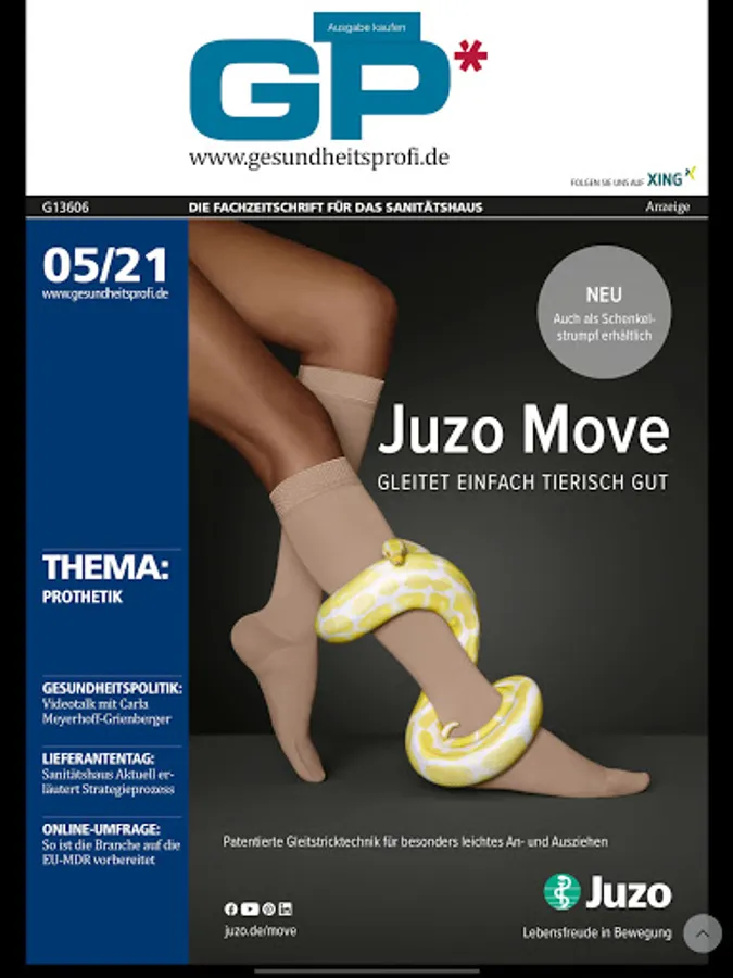 HealthProfi is the specialist magazine for the medical supply store, orthopedic trade and medical aids. It supports its target group, the decision-makers in the healthcare trade, trade and industry, in an advisory capacity in a market that is dominated by politics and health insurance companies and is therefore difficult. Current trends and news find their place in the magazine as well as the main topics planned in advance. This includes Rhea technology, compression garments and prosthetics, but also digitization, shop fitting and fashion. HealthProfi appears monthly.