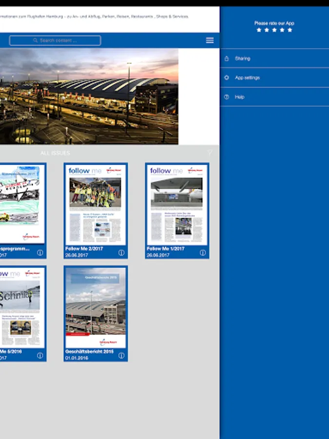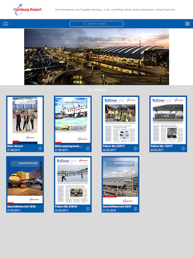 This app provides information for employees of the Hamburg Airport Group. Content employee newsletters, annual reports, educational programs and general airport conditions.