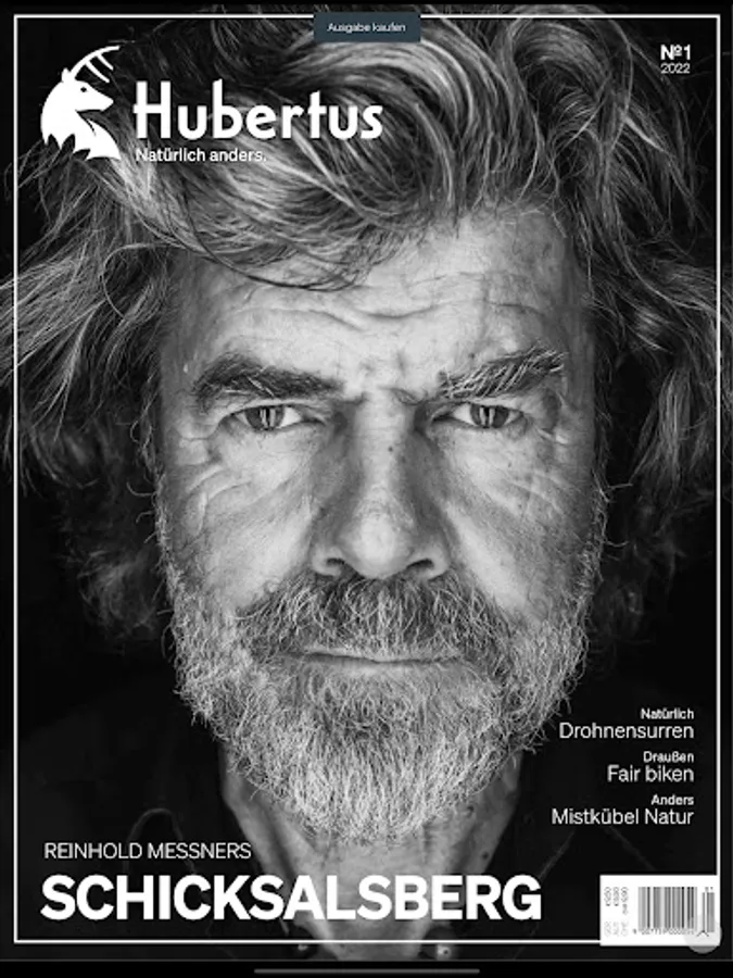 The first issue is dedicated to Reinhold Messner's mountain of fate, the Nanga Parbat, on which brother Günther Messner died in an accident more than 50 years ago. Among other things, it is about the rescue of young game with drones, beekeeping, mountain biking, meat consumption by Austrians and the excesses of today's throwaway society ("littering"). HUBERTUS is a magazine that has never existed in this form before: exciting, entertaining and critical. HUBERTUS. Of course different.
