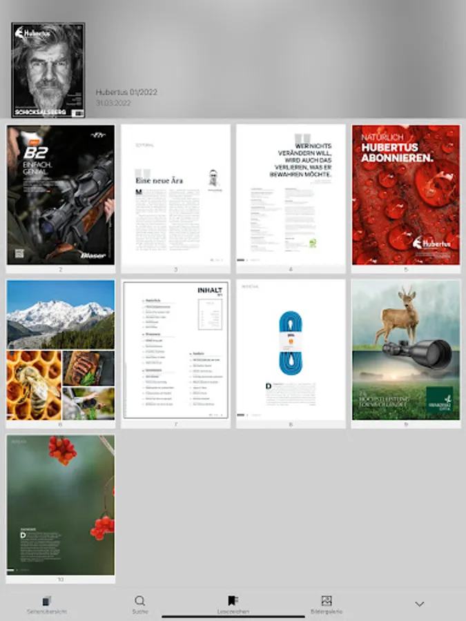 The HUBERTUS app offers numerous practical features, such as a comfortable reading mode, exclusive video clips, a full-text search, an archive, etc.