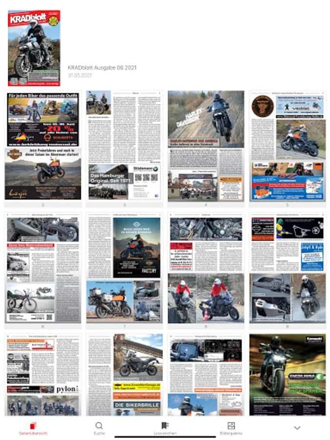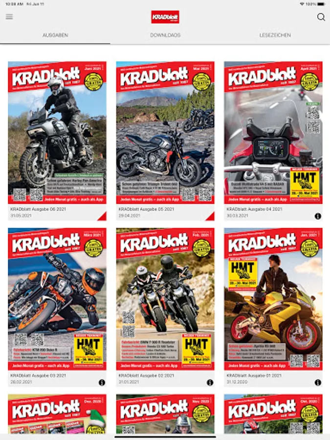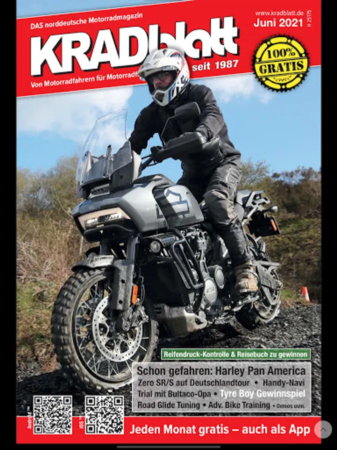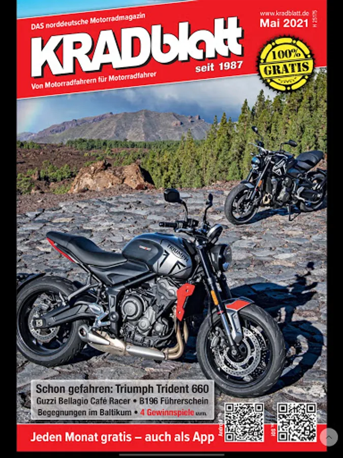 The KRADblatt has been published monthly since 1987 as a free magazine and offers driving and field reports, travel stories and information about motorcycles.