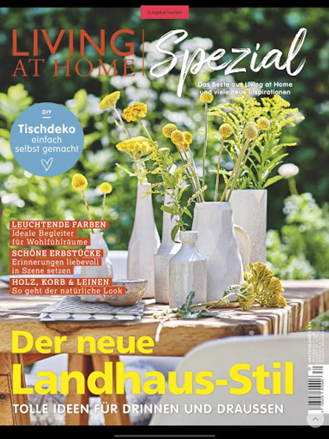 LIVING AT HOME covers a wide range of topics: travel, shopping, kitchen, decoration and garden are areas that have a fixed place in the reporting. The topic of DIY is also not neglected: you can make things yourself or redecorate your apartment without much effort, but stylishly and with class. The practical tips in LIVING AT HOME have well-illustrated and detailed instructions.
