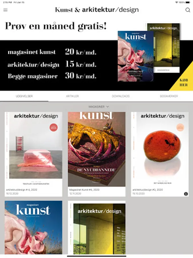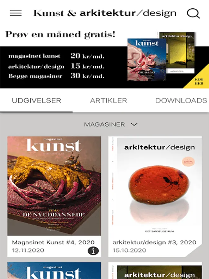 If you wish to subscribe, this can be done on the magazine kunst og arkitektur / designs's website (http://magasinetkunst.dk/Products/List) or by calling 3333 9596 or sending an email to info@magasinetkunst.dk