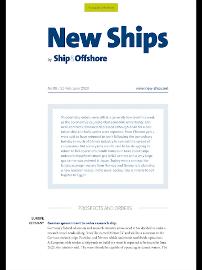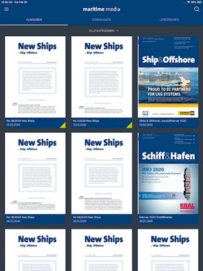 The kiosk is your digital access to maritime trade publications of DVV Media Group. The app allows you to quickly and comfortable reading the e-paper editions of "Schiff & Hafen", "Ship & Offshore" and "New Ships".
