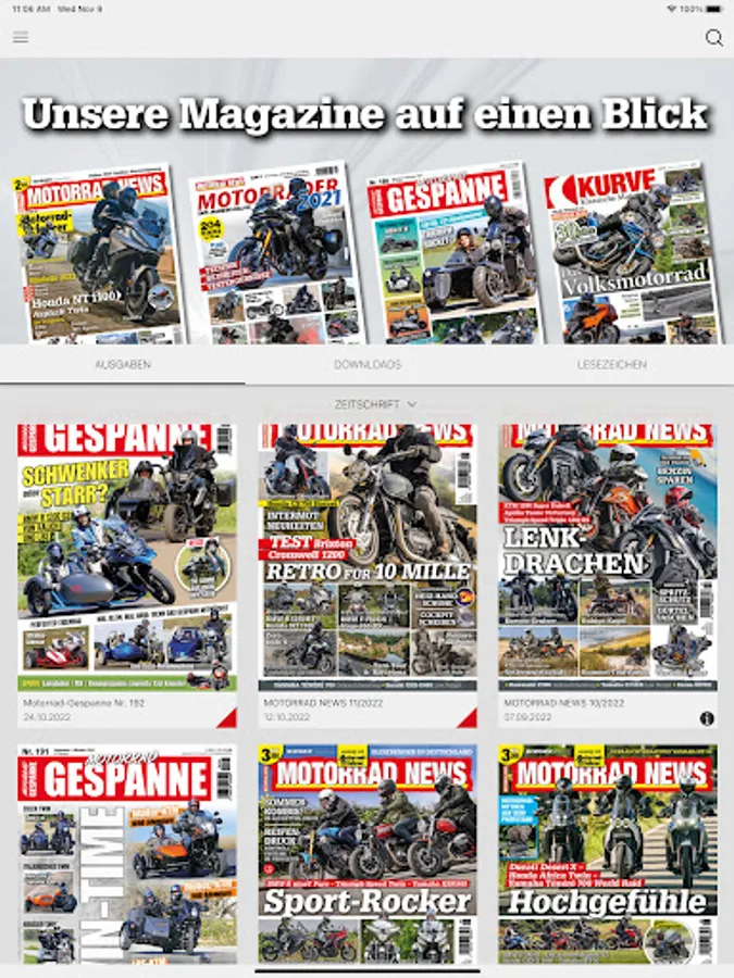 Now you can also enjoy your motorcycle magazine in the digital version. Single issues of the following issues can be read in this app: