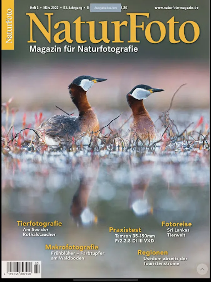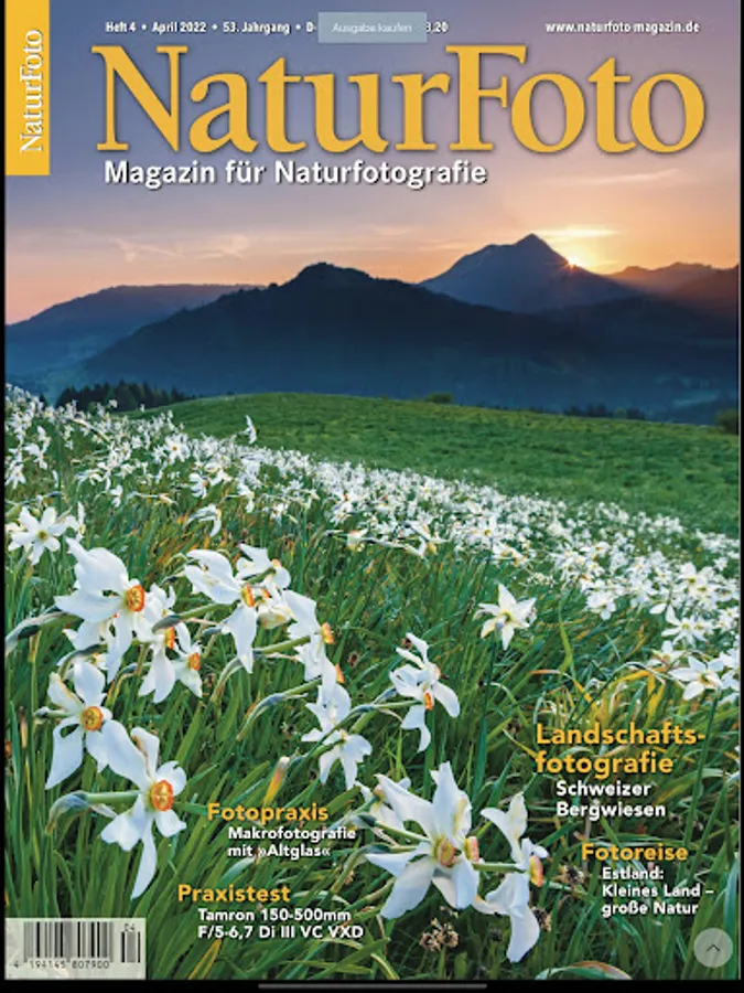 As the largest German-language specialist magazine for applied nature photography, NaturFoto is aimed at ambitious amateur and professional photographers alike. The monthly magazine offers experience reports and reports in every issue, as well as opulent portfolios of outstanding nature photographers.