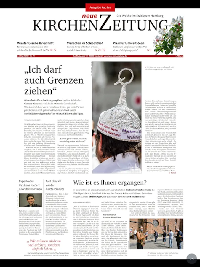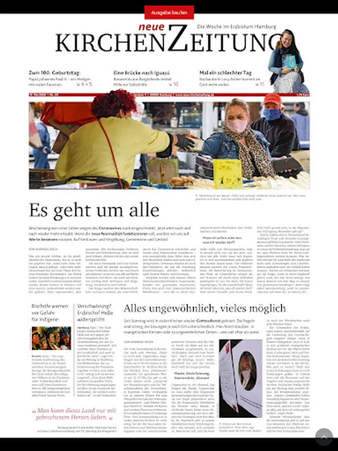 Answers to these questions can be found in the Kirchenzeitung, the weekly newspaper for the Archdiocese of Hamburg. It shows the colorful world of the Catholic faith. Download the e-paper and stay up to date with what's happening in the Archdiocese and the World Church.