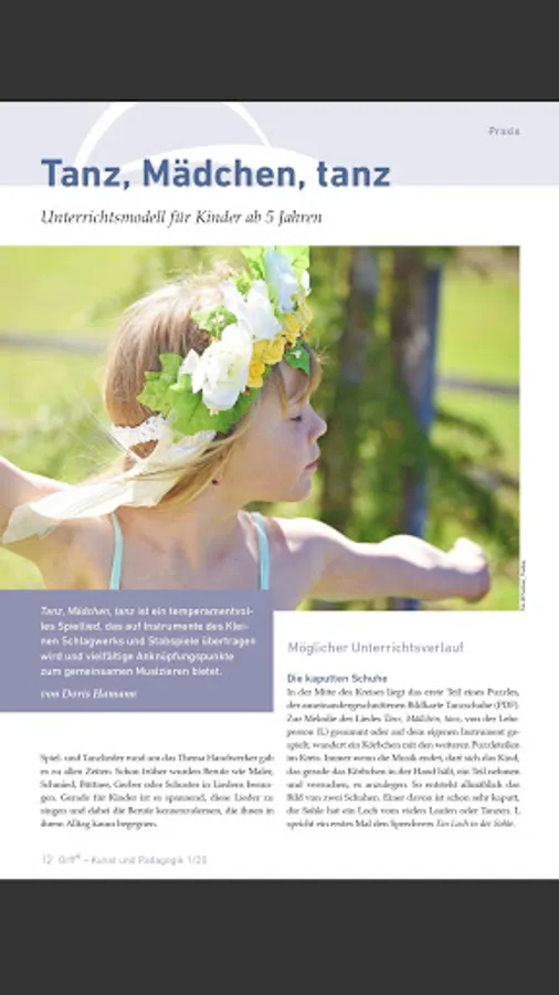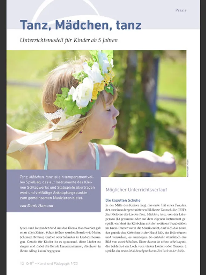 Up-to-date information on international activities, important events and courses in the artistic and educational fields complete the offer. The Carl Orff Foundation also reports on its activities in every issue.