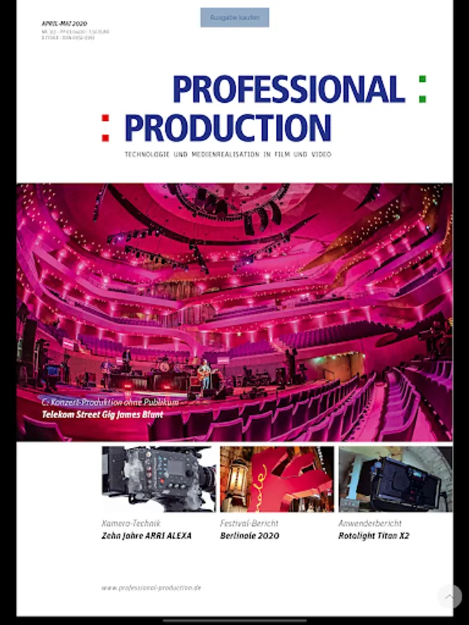 offers its readers current facts, data and trends from the media sector. Detailed reports and well-founded articles by journalists on all relevant and current topics (production, broadcast technology, media policy, etc.) from the world of film, TV and video characterize the modern appearance. A current service section with an appointment planner for trade fairs and events, a production telegram and much more completes the profile.