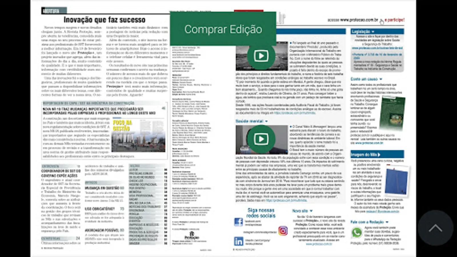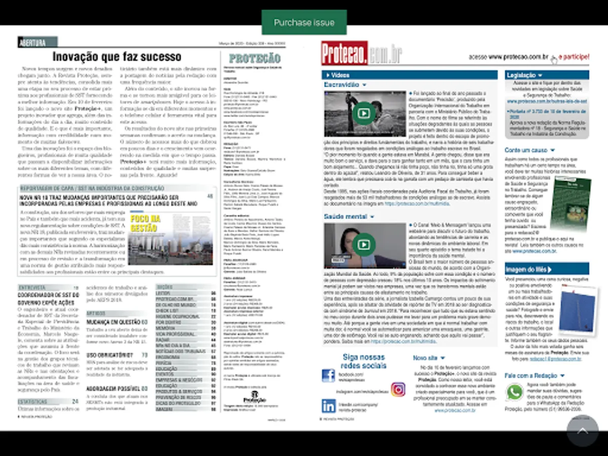 The trajectory of Revista Proteção has undergone a series of important initiatives, among which is the launching of the Brazilian Protection Yearbook, in 1995. This publication contains a summary of the main information needed by OSH professionals. Other products were launched, such as the CD-Rom Protection, bringing together the main articles and articles published by the magazine. In 2003, the Protection Agenda was launched, which is annually edited and serves as a support for professionals to retrieve their notes and technical information in a single document.