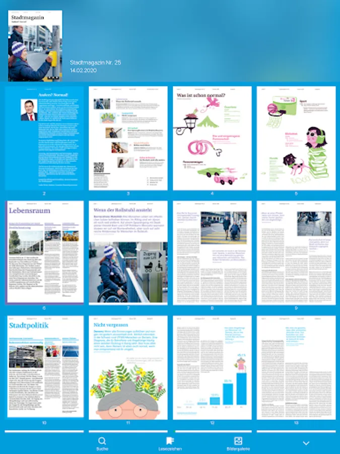 The city magazine tells stories from the city train. Subtle reporting, exciting photo galleries, short messages from politics, business, culture and leisure, school and family, evidence of urban events - this and much more can be found in the city magazine. In the digital version on their smartphone, tablet or browser's most recent editions of the city magazine enriched with even more content: Additional photo spreads, direct links to additional information, integrated movies, video posts, audio and advanced interaction. Discover train new - the city magazine app!