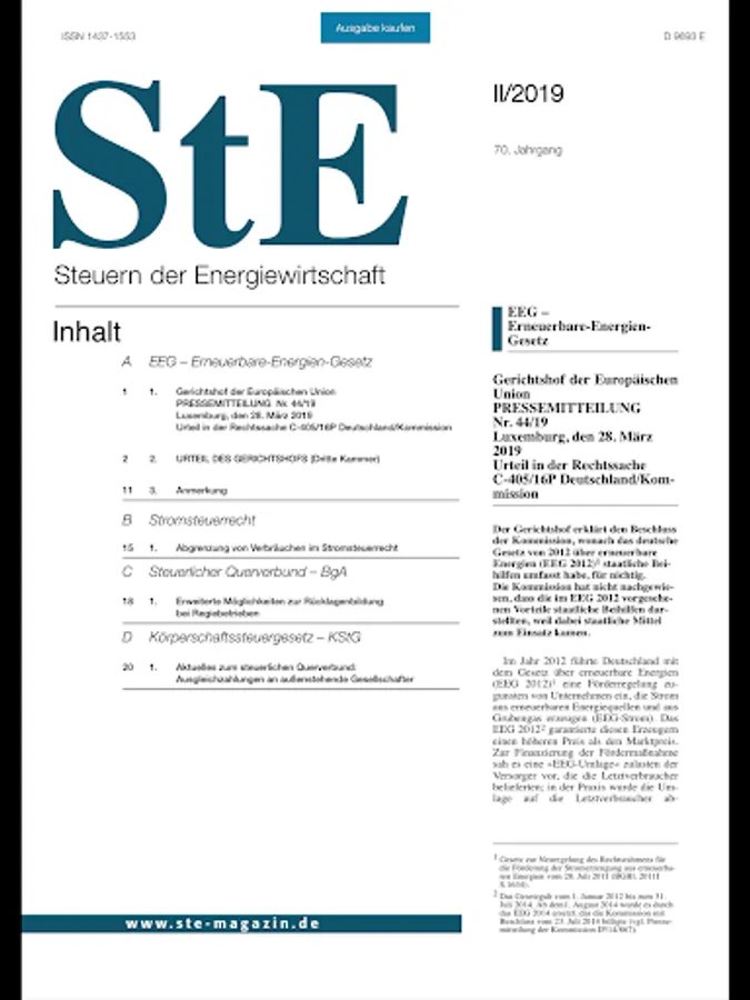 StE - Controlling the energy industry has been informing the finance, tax and legal departments in the energy industry and law firms for over 70 years about laws, ordinances, administrative regulations and case law concerning tax law throughout the utility industry.