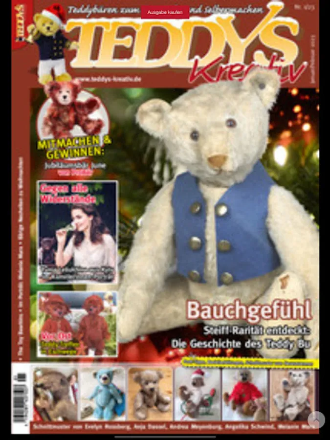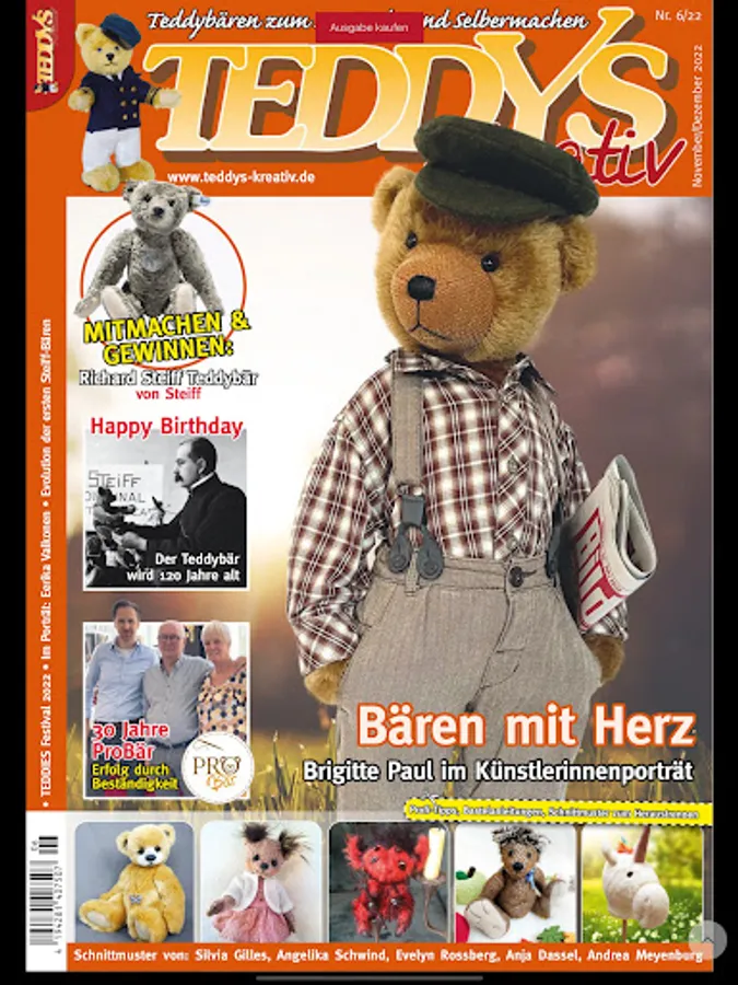 TEDDYS creative dedicated to all aspects of teddy bears and stuffed animals. In-depth article on the current state of the art bears, high quality antique teddy bears and instructions and patterns make the magazine an indispensable key medium: creative with TEDDY bear enthusiasts are perfectly informed every two month.