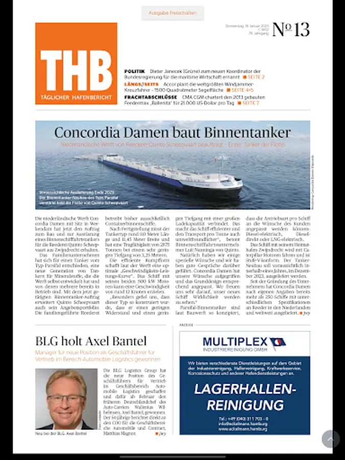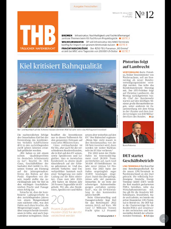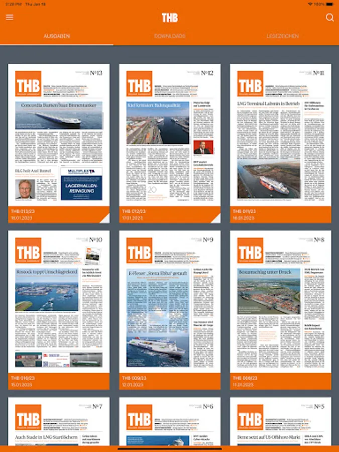 In THB kiosk gives you the opportunity to conveniently view the THB Daily Hafenbericht go. You just have to login once to automatically receive future your current issue immediately after publication.