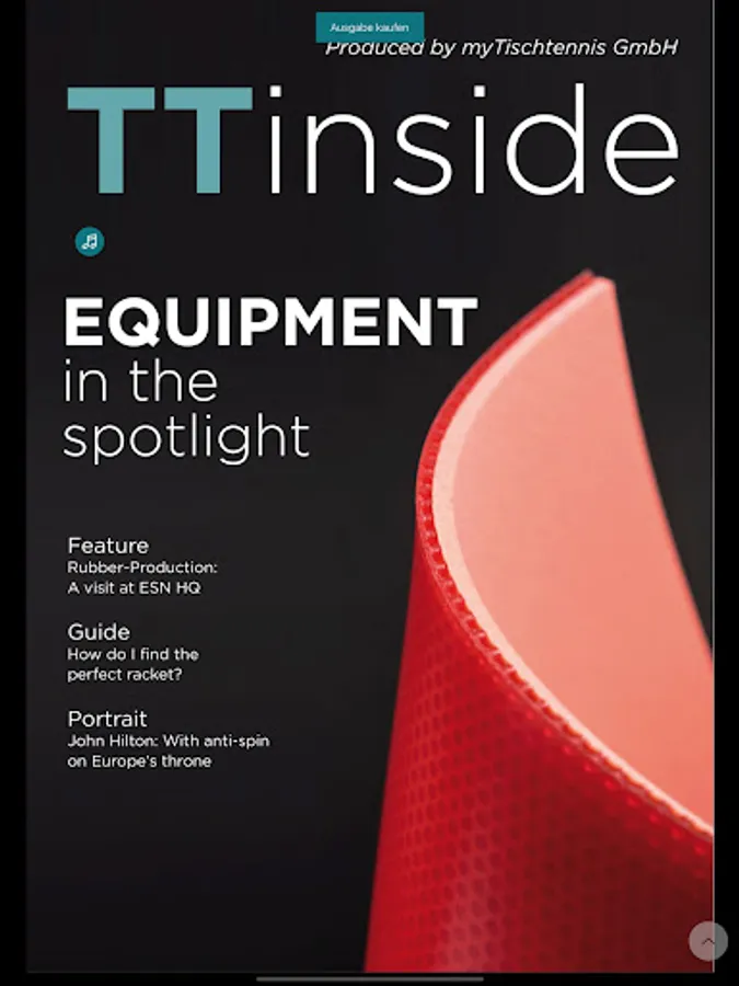 Whether a walk through the production halls at one of the world's biggest and most innovative rubber manufacturers ESN, a visit with the blade producer Soulspin or portraits of players with special equipment like John Hilton, Mattias Falck and Luka Mladenovic - the first issue of the magazine "TTinside" is dedicated to the whole range of the topic of table tennis equipment. On almost 90 pages, the rackets of the stars are examined, it is explained how to find the right racket for oneself and in which way pimples and anti-spin players can cause headaches. If you want to know more about what to expect in the first issue, take a look at its contents.