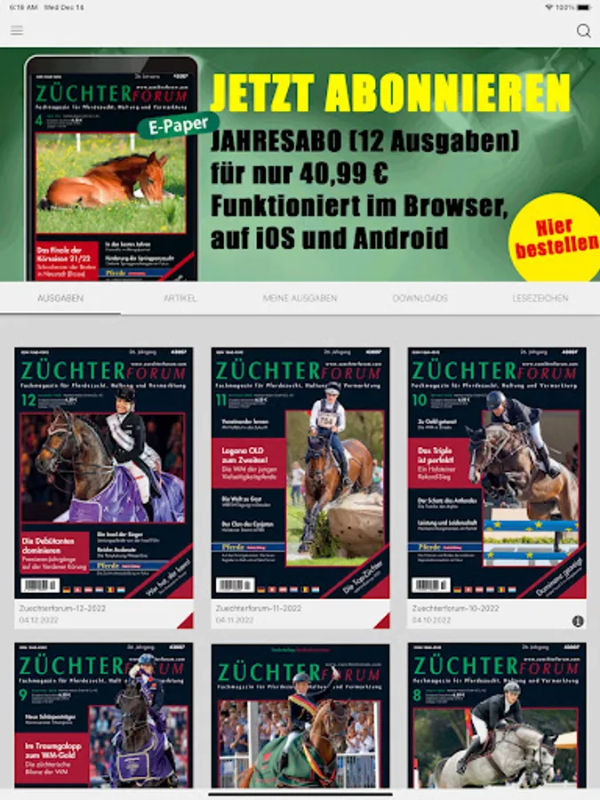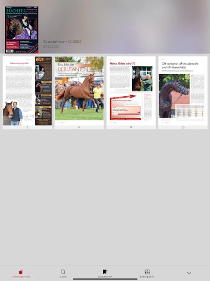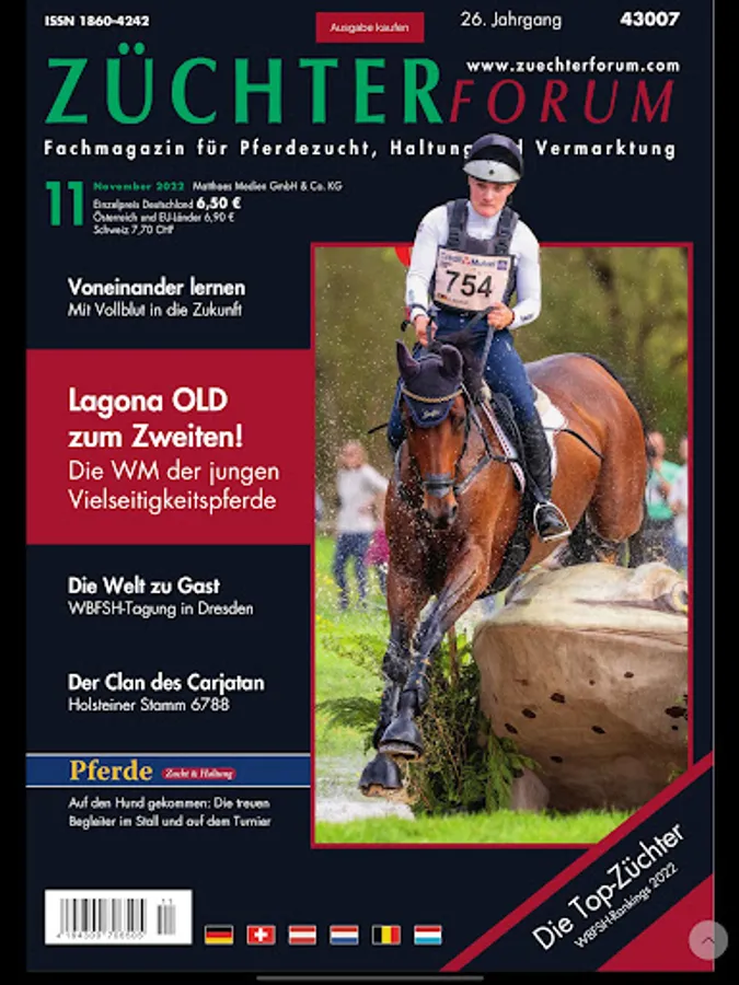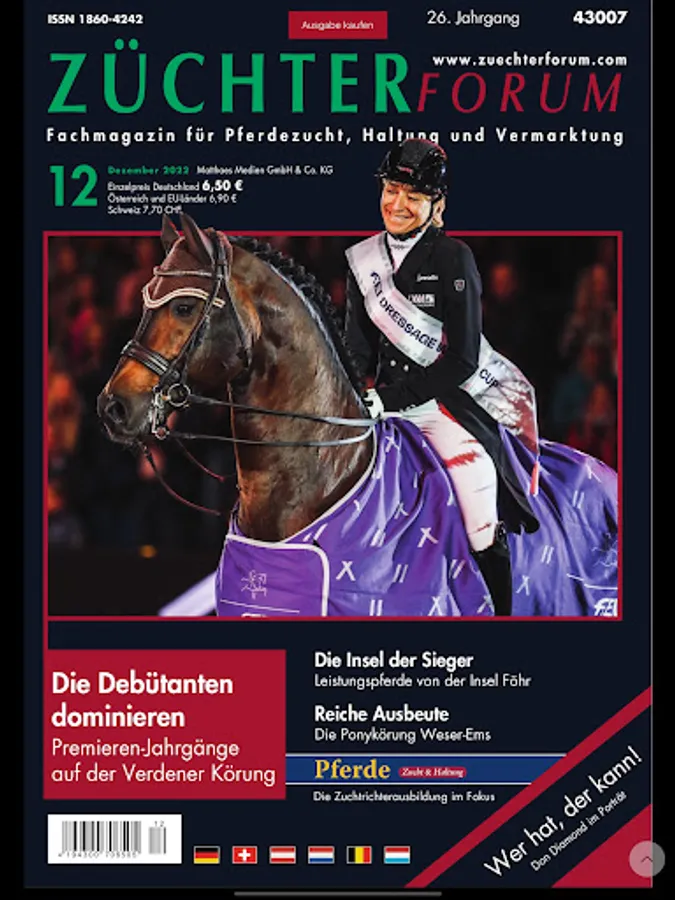 In the ZÜCHTERFORUM magazine, everyone who breeds or keeps horses or trades in them will find the latest information in the field of horse breeding. In the horse magazine, you can also read exciting reports, which are illustrated with high-quality photographs, and find out reliably which events are taking place in the individual breeding areas in the near future.
