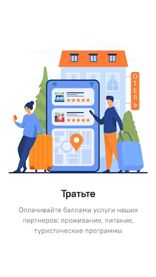 The functionality includes a loyalty system for active travelers: using Travel Bonus, you can receive discounts and bonuses for travel services from a wide partner network in different regions of Russia. Bonus points can be used to pay for accommodation, meals, excursions and much more. Also, the application has a convenient electronic guide that will tell you about the sights and help you plan your trip.