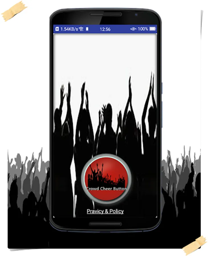 In this application you have to press the button below to listen the Crowd Cheer Button someone about to say something!!