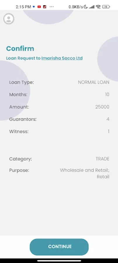 The data collected from the user includes full names, phone number, email and ID number. Depending on the organisation selected users might be requested for additional data which includes Kenya revenue authority number, employment details and business registration information. This data is collected for the purpose of pre-filling loan product forms.
