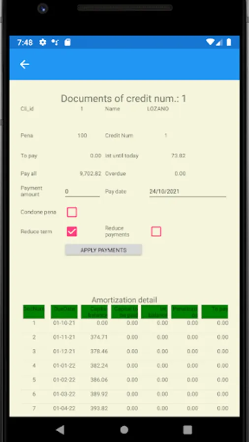 -Administra y controla préstamos personales del tipo francés (amortizaciones fijas de capital e intereses a tasa fija mensual) y alemán (amortizaciones de capital iguales e intereses sobre saldos insolutos)