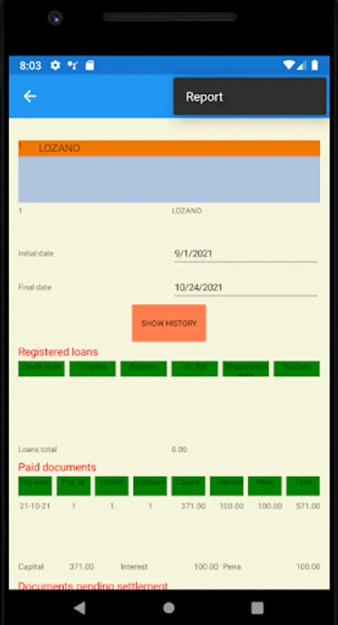 -Informes de créditos vigentes, documentos vencidos, preliminar de un préstamo.