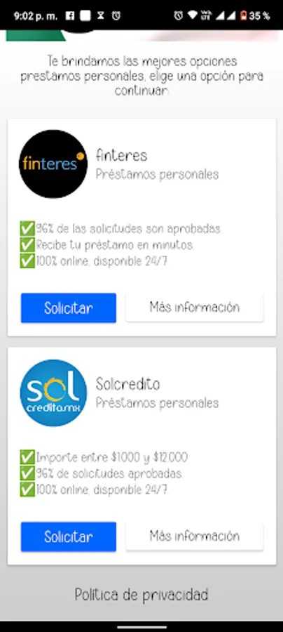 • Solcredito's privacy policy: https://www.solcredito.mx/politica-privacidad