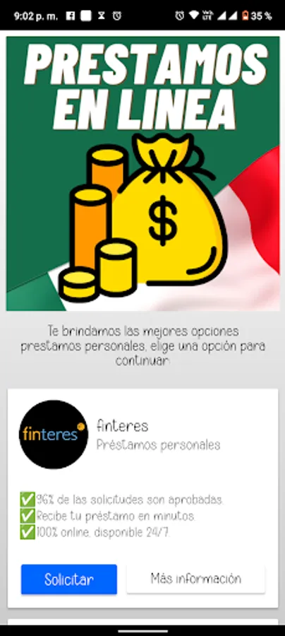 Our application is easy to use and allows you to request your loan at any time and from anywhere, as long as you have an internet connection. In addition, we offer a competitive interest rate and flexible payment terms to adapt to your needs.