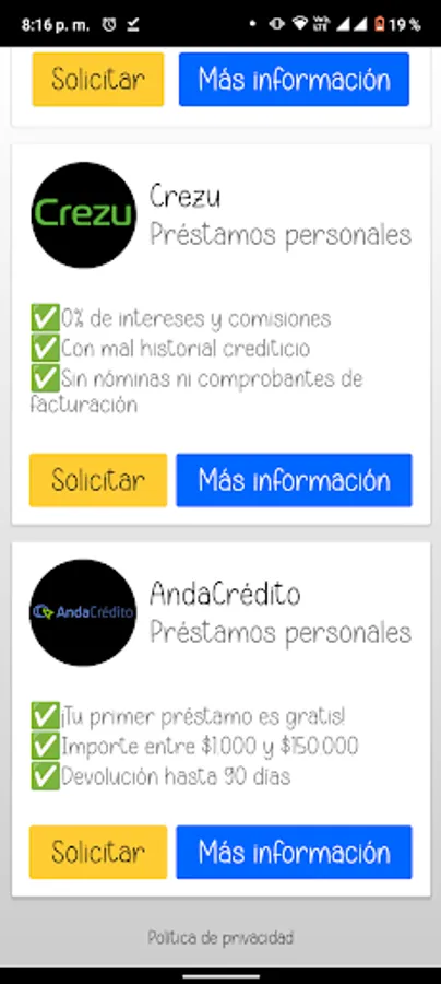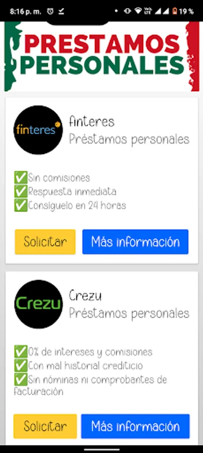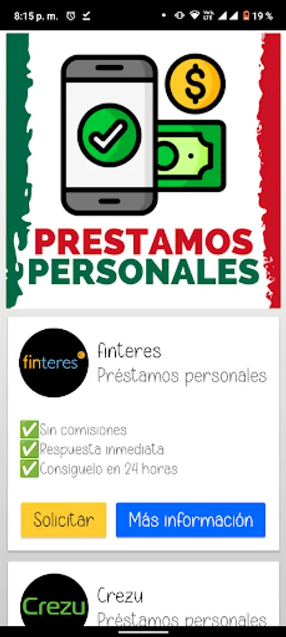 In summary, the Personal Loans Mexico application is an innovative digital solution to facilitate access to personal loans quickly, safely and efficiently, giving users the possibility of improving their financial situation through a wide variety of loan options from different lenders.