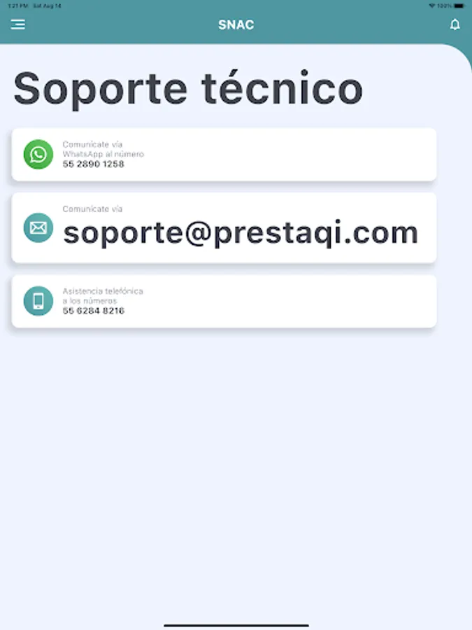 Or contact us by email at info@snacteháelparo.com, so we will help your collaborators to have the money they need at their fingertips.