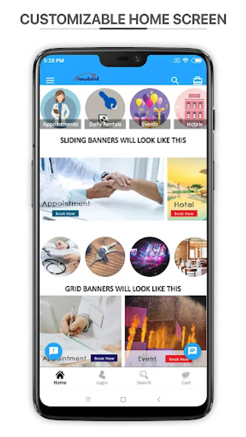 • The mobile app shoppers can book an appointment, hotel, event, restaurant & rent a car/bike, etc. from a single mobile application. Different slots available for single/multiple days can be booked from app & slots will be scheduled accordingly.