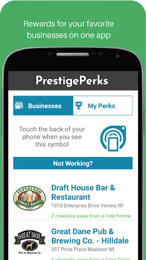 PrestigePerks is the best way to get rewarded and exclusive deals from your favorite local businesses. With NFC technology you will just tap your phone to designated areas in the business and start earning rewards.
