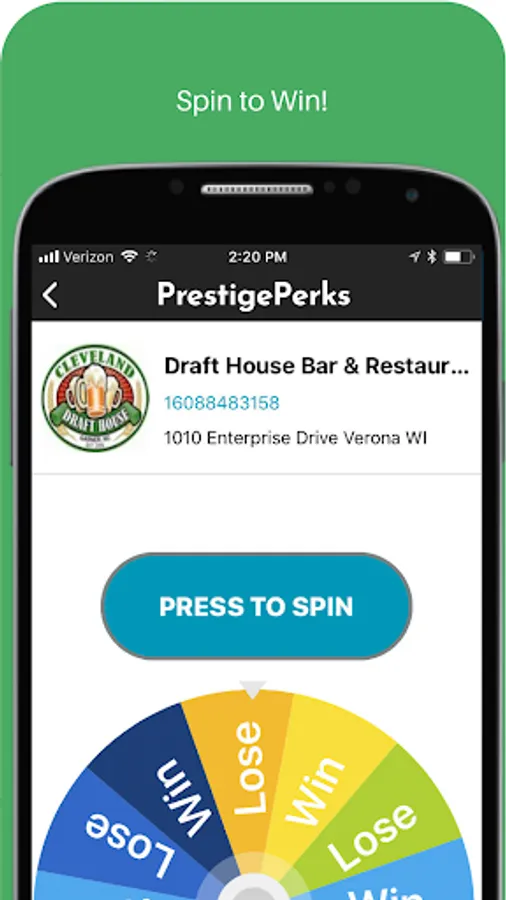 Play the Spin to Win game! If a participating business is doing Spin to Wins, when you tap your phone the wheel spins and gives you a chance to win a special reward!