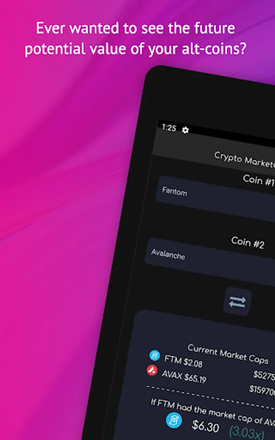 The Crypto Market Cap Utility Converter helps you to quickly visualize what your portfolio would be worth if your token mooned to another coins market cap (or tanked!).