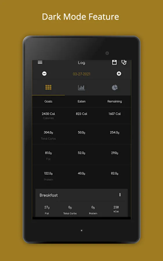 -Daily Calorie, Carb, Fat, Fiber & Protein Tracker & Counter to keep you focused.