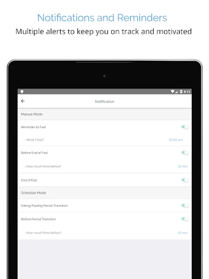 ★ Notifications: Get notification reminders to fast every day, alerts for when your window is almost finished, and when it has completed.