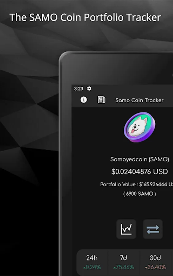 Enter in how much SAMO coin you have to easily see the value of it in USD everytime you open the app. No extras and bloat to clutter up the screen. Simply just SAMO prices and performance numbers