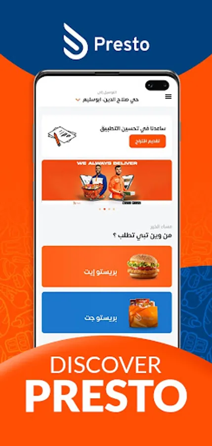 Presto is the on-demand delivery app that brings you the best of your city, right to your door and the fastest and most convenient way to order food and groceries in Benghazi and Tripoli. With our wide selection of restaurants and grocery items, you can find everything you need, all in one place. 📲🚀