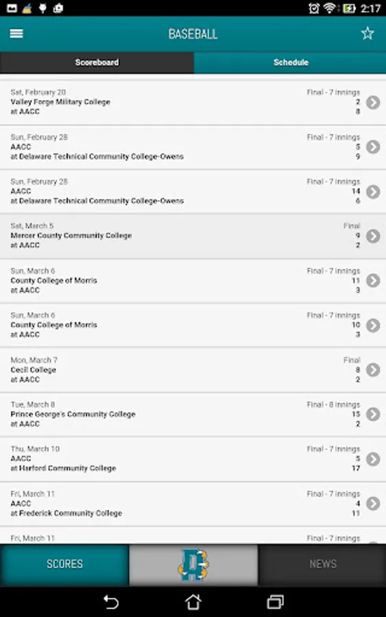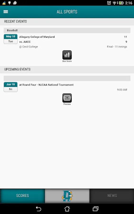 Created by PrestoSports in partnership with Anne Arundel Community College, AACC Front Row gives fans access to score updates, statistics and game recaps.