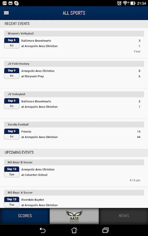 Created by PrestoSports in partnership with Annapolis Area Christian School, AACS Eagles Front Row gives fans access to score updates, statistics and game recaps.