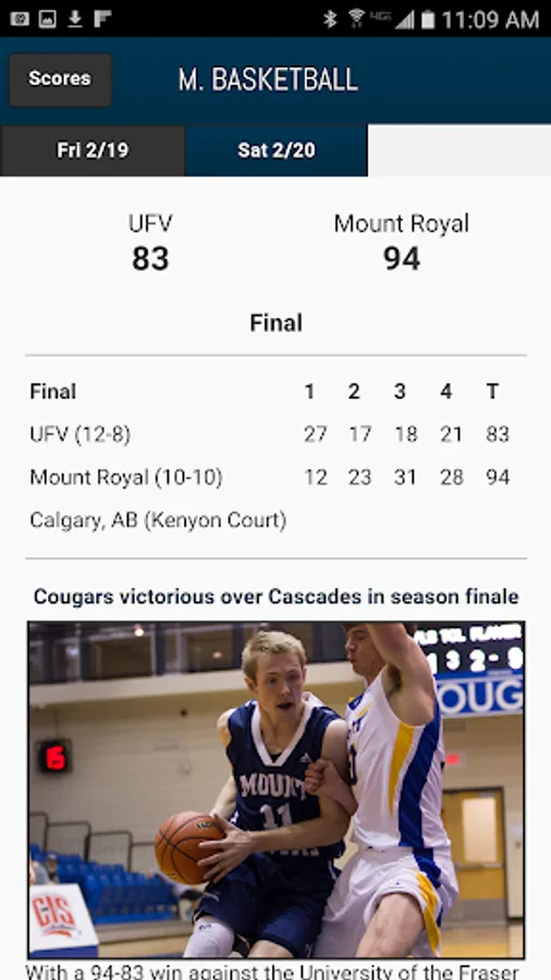 Created by PrestoSports in partnership with Mount Royal University, COUGNATION Front Row gives fans access to score updates, statistics and game recaps.