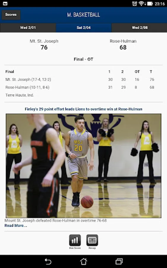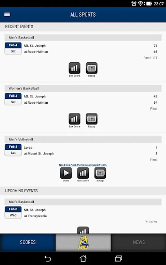 Created by PrestoSports in partnership with Mount St. Joseph Athletics, MSJ Sports Front Row gives fans access to score updates, statistics and game recaps.