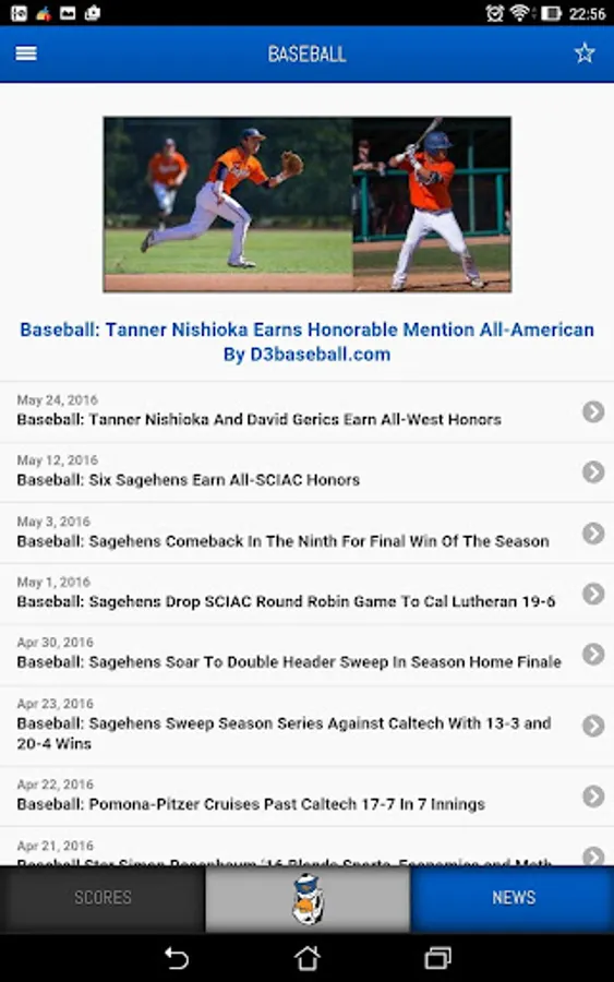 Created by PrestoSports in partnership with Pomona-Pitzer Athletics, Sagehens Front Row gives fans access to score updates, statistics and game recaps.