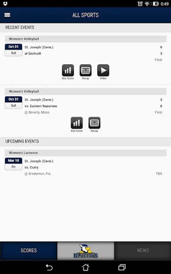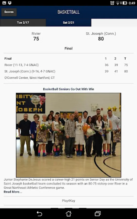 Created by PrestoSports in partnership with USJ the mobile app gives fans access to score updates, statistics and game recaps.